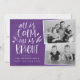 Enviar cartões de natal na moda para amigos e família com o nosso cartão com fotos de feriado "Tudo está Calmo". O cartão exibe a frase "All is Calm, All is Bright" em letras brancas com um fundo de aquarela roxo. Personalize a frente do cartão adicionando duas fotos e seus nomes.