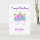 Cartão De Festividades Unicorn Flores Roxas Nome Personalizado de Natal