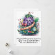 Ilustração estilizada de aquarela de um desenho animado de árvore de Natal com uma grande cabeça de uva fofa e um pequeno corpo de árvore de Natal. A árvore é decorada com Enfeites de natal com a citação "Que sua época de férias seja tão doce quanto uma uva na vinha, cheio de riso, amor, e um pouco de vinho!"