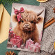 Cartão De Festividades Vaca Highland com Natal Rosa Arco
