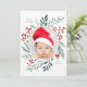 Este cartão de feriado multifoto personalizável apresenta elegantes botânicos do inverno com aquarela que belamente enquadram sua foto. Perfeito para feriados especiais extras como o primeiro natal do bebê, feriado salve as datas, e obrigado anúncio de casamento. Claro que faz uma declaração impressionante e na moda nesta época de férias, isso faz um excelente de guardar! Arte original da designer Nicole Barreto.