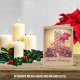 Esta foto, de um Holiday Candlestick feito à mão, é assoprada, luz em miniatura, embrulhada em vermelho e branco, listrada, fita e arcos cercados com verde de férias, e feltro, pétalas de poinsettia, com Holiday, texto Greeting.