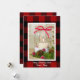 Foto da vela em jarro de mason com neve em fundo de xadrez de búfalo vermelho e preto