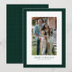 Um padrão de som verde de caçador festivo enquadra uma foto vertical de solteiro neste cartão de férias clássico. O tipo simples permite uma saudação personalizada ("Feliz Natal" pode ser mudado para "Felizes Feriados" ou qualquer coisa que você queira), nome da família e ano. O plano de fundo é um verde tradicional, mas pode ser alterado clicando em "personalizar". A parte de trás apresenta um padrão de som verde correspondente.