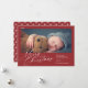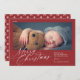 Cartões de Natal simples com texto "Feliz Natal" em uma fonte de script. Personalize com sua foto horizontal favorita, sua mensagem de saudação curta, seu nome de família e o ano. Cor vermelha festiva com letra branca.