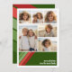 Frente - 6 Modelo de foto em uma grade simples com uma borda branca. Um padrão divertido e retrô de faixa com vermelhos e verdes e uma simples fonte fazem um design moderno e mínimo para a temporada de férias. Traseiro - Padrão verde profundo e vermelho de faixa retrorativa com vibração de 70 para o feriado. Se precisar mover alguma coisa, clique no botão personalizar para fazer alterações.