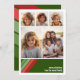 Frente - 5 Modelo de foto em uma grade simples com uma borda branca. Um padrão divertido e retrô de faixa com vermelhos e verdes e uma simples fonte fazem um design moderno e mínimo para a temporada de férias. Traseiro - Padrão verde profundo e vermelho de faixa retrorativa com vibração de 70 para o feriado. Se precisar mover alguma coisa, clique no botão personalizar para fazer alterações.