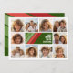 Frente - 10 Modelo de foto em uma grade simples com uma borda branca. Um padrão divertido e retrô de faixa com vermelhos e verdes e uma simples fonte fazem um design moderno e mínimo para a temporada de férias. Traseiro - Padrão verde profundo e vermelho de faixa retrorativa com vibração de 70 para o feriado. Se precisar mover alguma coisa, clique no botão personalizar para fazer alterações.