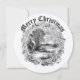 This is a digitally enhanced print is derived from a simple rustic Victorian era ca. 1860 black and white illustration of a Christmas winter scene framed by a wreath of branches and birds. You can easily personalize the text and customize the background color in this template.