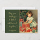 Ilustração vintage com uma garotinha adorável ao lado de uma árvore de Natal. No lado esquerdo, há uma saudação de época festiva. Uma bela ilustração retrô para suas mensagens de Natal! Personalize o cartão com seu nome e ano ou exclua o texto fictício.