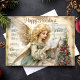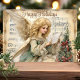 Mande uma mensagem celestial esta temporada com este cartão de Natal de anjo inspirado em vintage. Apresentando uma bela música de anjo, enquadrada por um santo festivo e um fundo de uma partitura clássica, esta carta traz um toque etéreo aos seus cartões de natal. Perfeito para quem ama imagens de férias tradicionais com um tema espiritual.