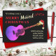 Traga alguns aplausos festivos de guitarra para a estação de natal com esta divertida carta de natal legal de natal. Uma mão engraçada desenhou uma guitarra acústica rosa e colorida, vestindo um chapéu de Papai Noel com notas musicais e scripts de tipografia, fáceis de personalizar com o modelo. Ideal para famílias que amam a música para enviar cumprimentos de época e para guitarristas, professores de música e músicos. Arte original de Catherine Sweetman