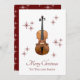 Um cartão musical de Natal feliz, com uma elegante tipografia vermelha e uma imagem de violino. Com a inscrição personalizável, você pode adicionar sua própria mensagem. O fundo tem um fundo correspondente e um padrão branco de flocos de neve. Excelente para adicionar um toque de música clássica aos seus cartões de natal.