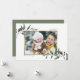 Watercolor Winter Greenery Christmas Holiday Cartão com fotos com galhos elegantes e uma folha de papel dourado falso em torno da sua própria foto. Fácil de personalizar o texto para fazer disso um design verdadeiramente personalizado.