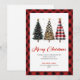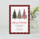 Cartão De Festividades Whimsical Red Plaid Christmas Tree Leopard Pattern