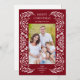 Este cartão de Natal vermelho escuro mostra uma elegante borda botânica de inverno branca do que enquadra a foto vertical. O verso oferece texto personalizado para sua mensagem pessoal.