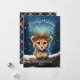 Este adorável cartão de cartões de natal apresenta uma ilustração fofa de Cheetah Cub vestindo uma coroa festiva de flores de inverno, sagradas, pinheiras e bagas, com flocos de neve suavemente caindo contra um fundo de floresta russa nevando. O pequeno Chita Cub está a espreitar por cima do tronco de neve para dizer olá! O texto lúgubre "Desejos de Férias Joyosas" adiciona uma saudação sazonal quente e pode ser personalizado como quiser. O verso é decorado com uma verificação de xadrez clássica, adicionando um toque tradicional ao design geral. Este cartão bonito e brincalhão é perfeito para enviar alegria de férias para a família e amigos, e o nome e data personalizáveis fazem dele uma marca personalizada.