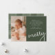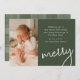 O atual cartão de natal russo de uma foto do país apresenta um roteiro de feliz branca na moda e tons festivos de verde com um padrão de xadrez de retalhos no verso do cartão. Personalize o cartão de saudação clássico com sua foto personalizada da família!