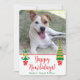 Esta maravilhosa foto do cartão de Natal mostra uma foto de seu(s) cachorro(s) doce(s) na frente com as palavras, "Yappy Howlidays!", duas fabulosas árvores de estilo retrô em vermelho e verde, e seus primeiros nomes. As fontes estão nítidas e limpas, fazer que a placa parece moderna, mas tradicional. É tão fácil fazer deste cartão o seu. Basta selecionar Personalizar este modelo, digitar os seus primeiros nomes e os nomes do cão e carregar uma fotografia favorita. É tão fácil!