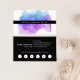 Os cartões de visitas de aquarelas de chic apresentam seu nome ou nome de empresa em camadas em uma ilustração florescente de tinta em tons brilhantes e coloridos de indigo azul e violeta roxo. Adicione as informações de contato do cheio ao fundo em branco sobre preto nítido. Inclui a sua oferta de fidelidade personalizada (mostrada com "desfrute 20% de qualquer serviço após cinco visitas") e seis pontos.