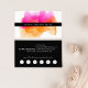 Os cartões de visitas de aquarela apresentam seu nome ou nome de empresa em camadas em uma ilustração florescente de brilho de tinta em tons brilhantes e coloridos de sunset de fuchsia rosa e goldenrod. Adicione as informações de contato do cheio ao fundo em branco sobre preto nítido. Inclui a sua oferta de fidelidade personalizada (mostrada com "desfrute 20% de qualquer serviço após cinco visitas") e seis pontos.