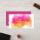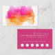 Os cartões de visitas de aquarela apresentam seu nome ou nome de empresa em camadas em uma ilustração florescente de brilho de tinta em tons brilhantes e coloridos de sunset de fuchsia rosa e goldenrod. Adicione as informações de contato do cheio ao fundo em branco em magenta. Inclui a sua oferta de fidelidade personalizada (mostrada com "desfrute 20% de qualquer serviço após cinco visitas") e seis pontos.