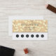 Cartões de fidelidade chic bubble apresentam um padrão de fundo de luzes bokeh em tons de champanhe de ouro, com seu título personalizado, termos de oferta de fidelidade e seis socos. Mostrado com "desfrute 20% de folga após cinco visitas". Personalize o lado inverso com as informações de contato da sua empresa. Para uma aparência metálica, recomendamos o upgrade para o papel de acabamento da Pérola.