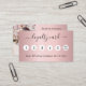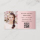 Fundo de aparência metálica falsa, cor-de-rosa esfarelado, texto preto Na frente: Adicione seu desconto. Voltar: Personalize e adicione sua foto, nome, título, número de telefone, email, endereço do site, código qr ao seu site.