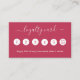 Um fundo magenta tendencioso, texto branco Na frente: Adicione seu desconto. Voltar: Personalize e adicione sua foto, nome, título, número de telefone, email, endereço do site, código qr ao seu site.