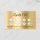 Crie lealdade ao cliente em estilo com este cartão de fidelidade comercial ouro. A frente apresenta círculos elegantes para marcar cada compra ou visita, enquanto a parte traseira inclui espaço para o logotipo da sua empresa, código QR, informações de contato. Ideal para salões, cafés, boutiques e empresas de serviços que querem manter os clientes voltando. Criado profissionalmente para fazer sua marca se destacar on-line e pessoalmente. Na frente: adicione desconto. Voltar: Personalize e adicione seu nome, título, número de telefone, email, endereço de site, logotipo de empresa.