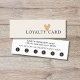 Modelo de cartão de fidelidade perfeitamente personalizável para salão de beleza. Design mínimo elegante com ícone de coração de ouro FAUX e fundo branco de luxo. Ferramenta perfeita de marketing para recompensar seus melhores clientes.