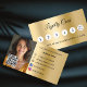Crie lealdade ao cliente em estilo com este cartão de fidelidade comercial ouro. A frente apresenta círculos elegantes para marcar cada compra ou visita, enquanto a parte traseira inclui espaço para o logotipo da sua empresa, código QR, informações de contato. Ideal para salões, cafés, boutiques e empresas de serviços que querem manter os clientes voltando. Criado profissionalmente para fazer sua marca se destacar on-line e pessoalmente. Na frente: adicione desconto. Voltar: Personalize e adicione seu nome, título, número de telefone, email, endereço de site, logotipo de empresa. Ícones do Facebook e Instagram.