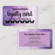 Este é o Cartão de Desconto de Fidelidade perfeito para uma empresa moderna, na moda e de tendências. Este design apresenta mosaico, giro, moderno e bonito faux impresso roxo, lilac e lavanda cintilante, gradiente ombre, borboletas e fontes pretas escritas à mão. Esses cartões adicionarão esse toque pessoal e profissional aos seus anúncios de negócios e de carreira. ***NOTA DE DESIGN IMPORTANTE: Para qualquer solicitação de design personalizada, como solicitações de correspondência de produtos, alterações de cor, mudanças de posicionamento ou qualquer outra solicitação de alteração, clique no botão "CONTACT" ou envie um e-mail ao designer diretamente em lafemme.art@gmail.com. Você pode até enviar um e-mail para ela solicitando um design completamente personalizado e novo.