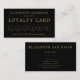 Este o abstrato, círculos afligidos do estilo no ouro do falso (nenhuma folha de ouro é usada realmente) em um fundo preto decora a parte dianteira deste cartão de visita elegante e moderno da lealdade.