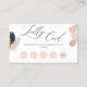 Cartão de lealdade elegante com cores cor rosa e branca pinceladas apresentando os seus contatos comerciais, caligrafia de script manuscrito azul escuro juntamente com um lugar para os seus contatos e seções personalizáveis sobre desconto. Itens correspondentes disponíveis.