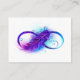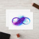 Símbolo infinito com uma bela pena pintada em cores roxas e azuis brilhantes sobre fundo branco.