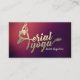 Meditação Elegante de Yoga Studio Aéreo Pilata Modelo de cartão de negócios de Instrutor de Malhação - Yoga Pose aérea Dourada Elegante e Tipografia de Script Manuscrito no Fundo de Textura Vermelha Roxo Burgundy.