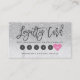 O brilhante brilho prateado estimula o cartão-fidelidade do cabelo cor-de-rosa com tipografia moderna de pincel com letras de mão em branco, um cartão simples, profissional e minimalista.