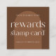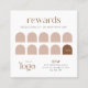 Cartões modernos de fidelidade comercial com fundo de arco boêmico e esquema de cores terracotta - você pode editar todas as cores para se adequar à sua estética marca. A fonte serif moderna lê 'Cartão de Carimbo de Recompensa', com espaço para detalhes comerciais e logotipo, assim como a oferta de desconto de fidelidade. Há 10 slots de carimbo inclusos, edite usando a ferramenta design para adicionar/remover os slots de carimbo, conforme necessário. Esse cartão mínimo de fidelidade de boho pode ser adequado ao seu salão de lash, unhas spa, cabeleireiro ou maquiagem, boutique e muito mais!