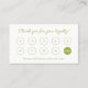 Cartão de fidelidade comercial verde-claro simples e elegante com marcadores para dez visitas ou encomendas. A parte de trás apresenta o clássico monograma da borboleta, marcadores de posição para seus detalhes de contato e quatro ícones das mídias sociais - Facebook, Instagram, Pinterest e YouTube (ative-o no nível de design). Atrair clientes repetidos agradecendo-lhes e oferecendo um desconto para sua próxima visita ou pedido com este modelo de cartão de fidelidade de na moda. © y.BEE PAPERIE #ZazzleMade #LoyaltyCardModelos #PrintableLoyaltyCards #GreenLoyaltyCards