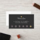 Design de cartão de fidelidade elegante, na moda, com um coração de folha de ouro falso em fundo preto. Isto NÃO é uma folha de ouro real - mas uma imagem. Não há brilho ou textura. Um cartão de chamada versátil para profissionais criativos e empresários. Este cartão de recompensa também é excelente para salões de beleza, cabeleireiros, boutiques de moda, planejadores de casamento, designers de joalharia ou qualquer outro profissional que conheça a imagem.