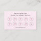 Recompensar seus clientes leais com este charmoso cartão de fidelidade de cor d'água rosa. Os delicados corações aquosos são colocados sobre um fundo cor-de-rosa macio, criando uma estética quente e convidativa. Esta design é perfeita para spas, salões, boutiques ou qualquer negócio que queira mostrar apreço pela clientela repetida. Encorajar negócios repetidos e construir relacionamentos duradouros com um toque de doce elegância. Faça cada visita contar e observe sua lealdade de cliente florescer com este cartão de visita bonito e funcional.