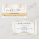 Seu nome ou nome comercial é exibido elegantemente em uma fonte de script para uma impressionante impressão neste cartão de visita de compromisso do designer. Um fundo delicado de pontos de confete caídos em ouro falso dá a ilusão de nadador. Esta placa de lado duplo oferece ampla margem na parte de trás para suas informações de contato e mídias sociais. Um cartão bem projetado para maquiadores, estilistas de cabelo, salões de beleza, técnicos de unhas, estúdios de lash e muito mais. Arte e design © 1201AM Design Studio | www.1201am.com