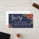 Cartão de fidelidade azul marinho para um cabeleireiro em um design floral boho com rosas, picos e margaridas. Para um desconto na sexta visita, com um coração pingado como marcador.