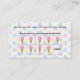 Faça uma doce impressão sobre clientes leais com este cartão de visita de Lealdade Compre. A frente apresenta um fundo de bolinhas suave com um círculo contendo um cone de sorvete. Impressões de informações comerciais por baixo. O inverso revela um programa de fidelidade em que o cliente pode comprar 9 itens e receber gratuitamente o décimo. Entre em contato com este compro se preferir um valor de fidelidade diferente. Disponível com produtos correspondentes.