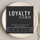 Modelo de cartão de fidelidade personalizável, preto e branco, quadrado moderno para profissionais de beleza. Design simples, totalmente personalizável.