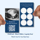 Show appreciation and build customer loyalty with this elegant café thank you card, featuring space for six round rubber stamps. Includes a QR code for menu access and a modern blue-and-white design. Perfect for coffee shops and small cafés looking to reward repeat customers.