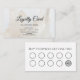 Mostre sua apreciação aos seus clientes, oferecendo-lhes serviços gratuitos quando eles participarem de seu programa de fidelidade. Personalize este elegante cartão de fidelidade White Crystals Salon / Spa com os detalhes de sua oferta e negócios. Este elegante cartão de fidelidade personalizado apresenta uma fotografia aproximada de um geode mineral druz de quartzo branco com fundo branco. O quartzo claro também é conhecido como o "curandeiro-mestre" e "pedra do poder" e é dito que amplifica qualquer energia ou intenção, ideia perfeita para um massagista natural, especialista em cicatrização do mestre ayurveda, ou estético natural.