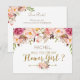 Cartão de Convite para Menina das Flores com desenho floral de primavera em rosa e dourado. Perfeito para o seu casamento romântico de primavera.