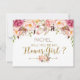 Cartão de Menina de Flores com design floral rosa, dourado e primaveril. Perfeito para o seu casamento romântico de primavera.